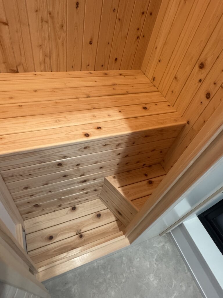 ロウリュも楽しめる本格フィンランドサウナ空間となりました。